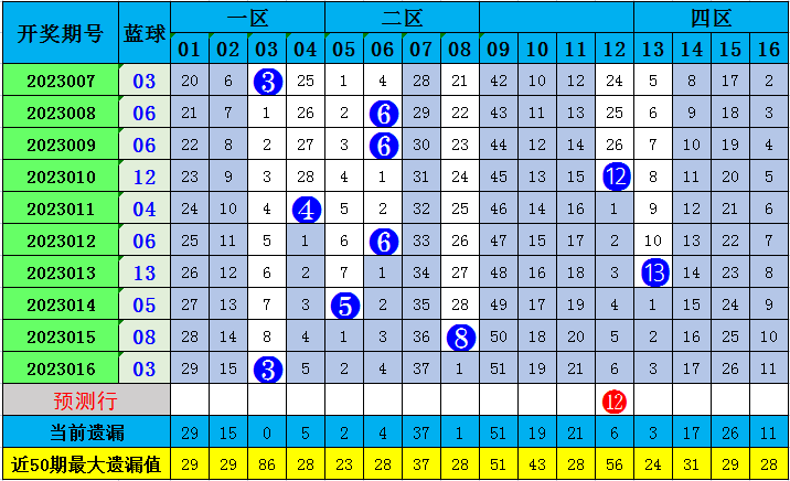 福彩双色球第2023016期:红球14 16 19 23 28 30;蓝球03。红球号码质合比为2:4,012路比为1:3:2,奇偶比为2:4。蓝球开出遗漏8期小奇数08。