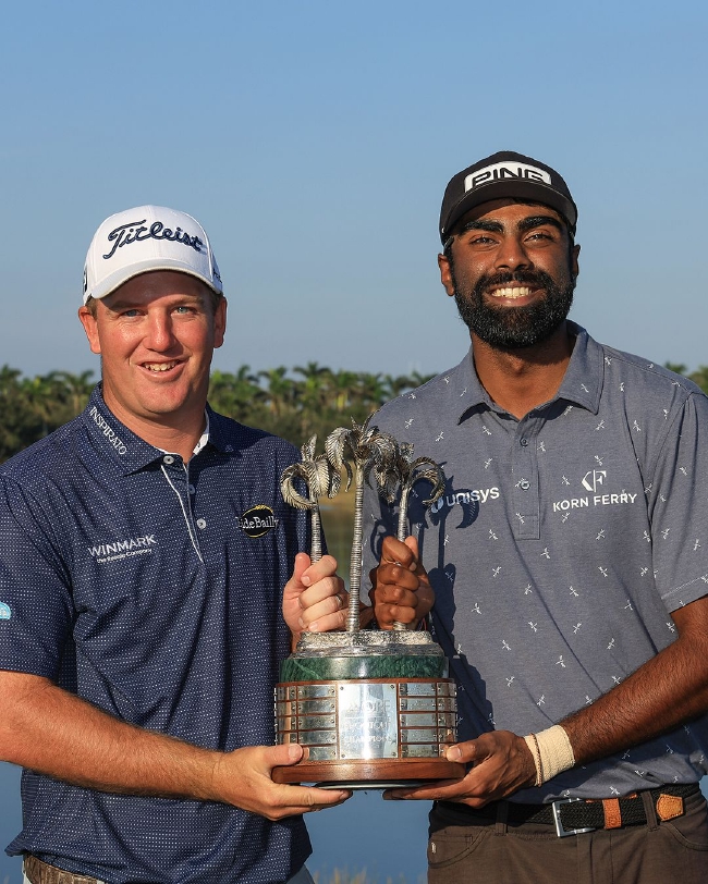 北京技能12月12日,赛想-斯瑞加拉(Sahith Theegala)星期天在迪伯伦高尔夫俱乐部临了一洞推入15英尺小鸟推,联袂汤姆-霍吉(Tom Hoge)在最好杆数赛中打出62杆,低于步调杆10杆,成为11年以来第一队赢得QBE大奖赛的新东谈主组合。